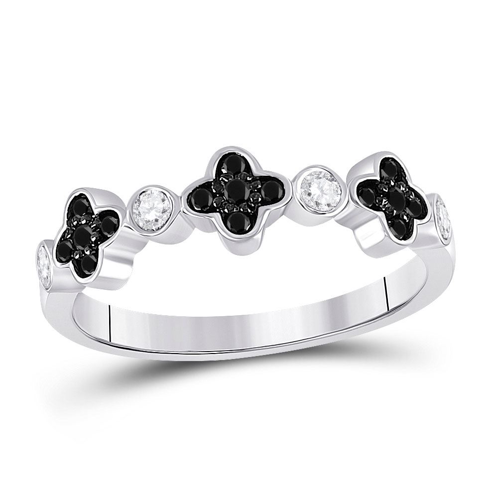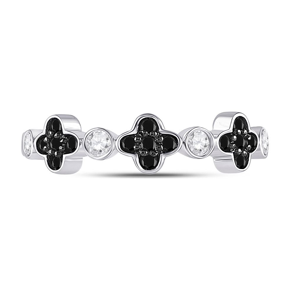 10kt White Gold Womens Round Black Color Enhanced Diamond Clover Band Ring 1/4 Cttw.