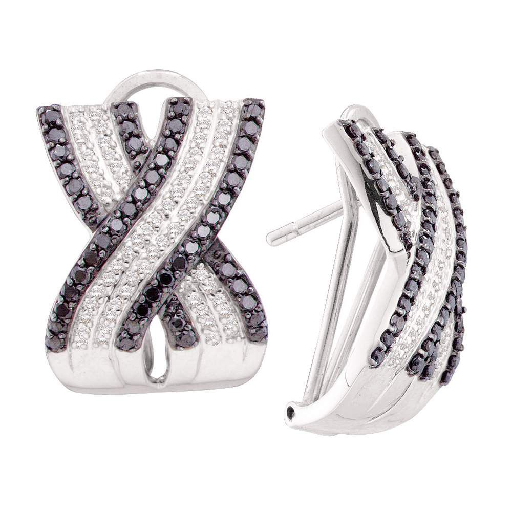 REF-95R5K - SKU: GD51942 ---- Round Black Color Enhanced Diamond Crossover Hoop Earrings 1-1/2 Cttw 14kt White Gold