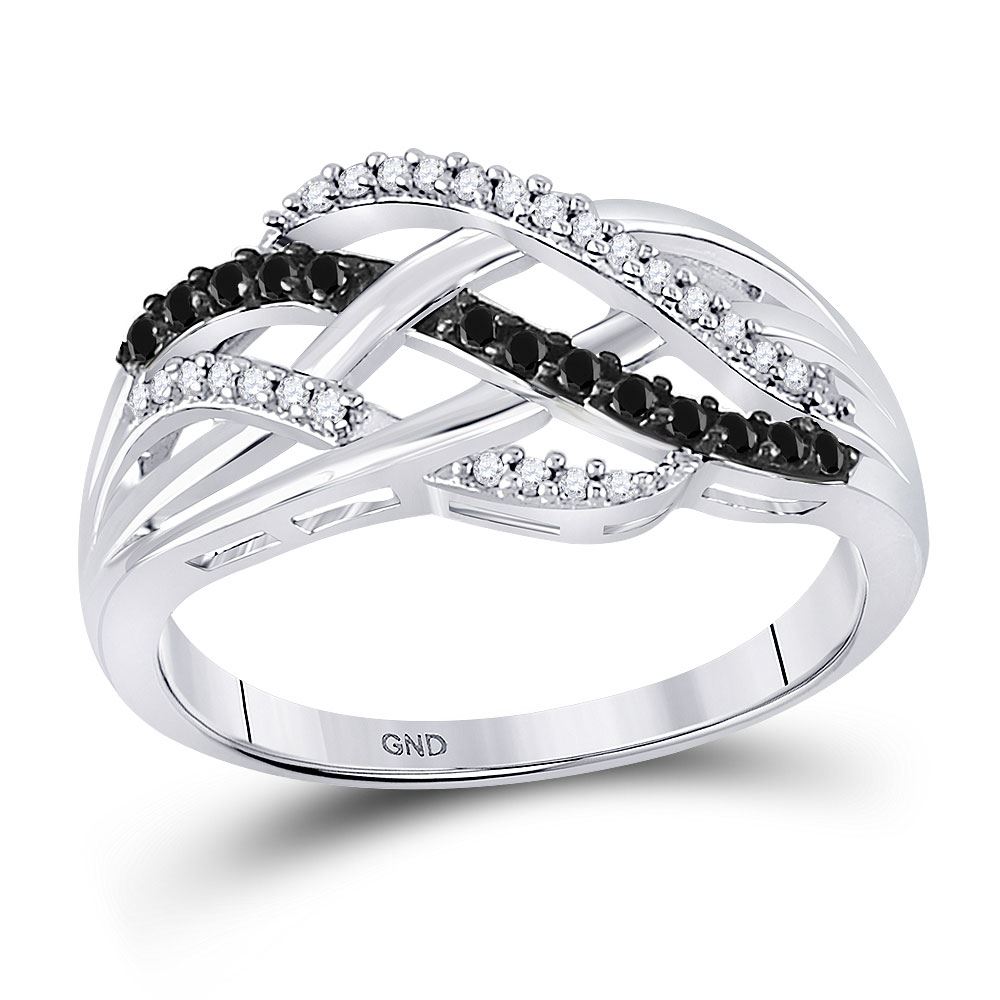 REF-18N2F - SKU: GD90483 ---- Round Black Color Enhanced Diamond Crossover Strand Band 1/4 Cttw 10kt White Gold