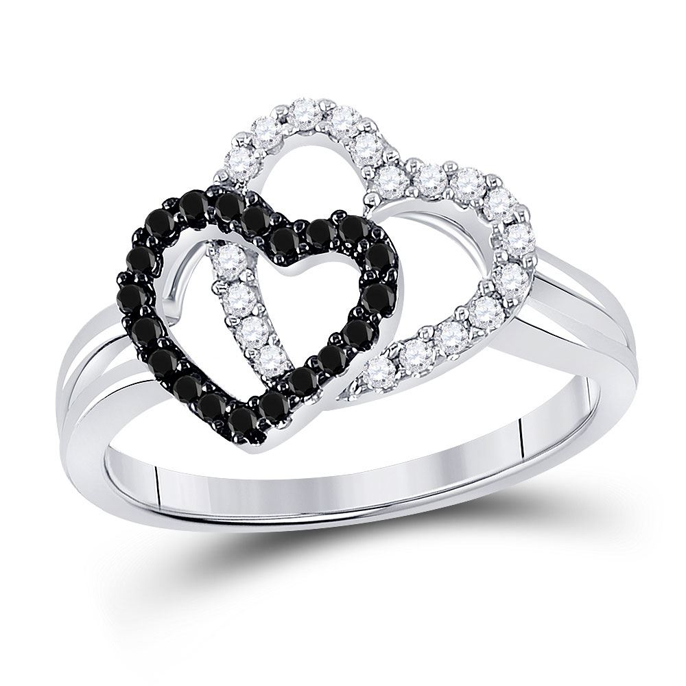 REF-33X6Y - SKU: GD51104 ---- Round Black Color Enhanced Diamond Double Heart Ring 1/3 Cttw 14kt White Gold