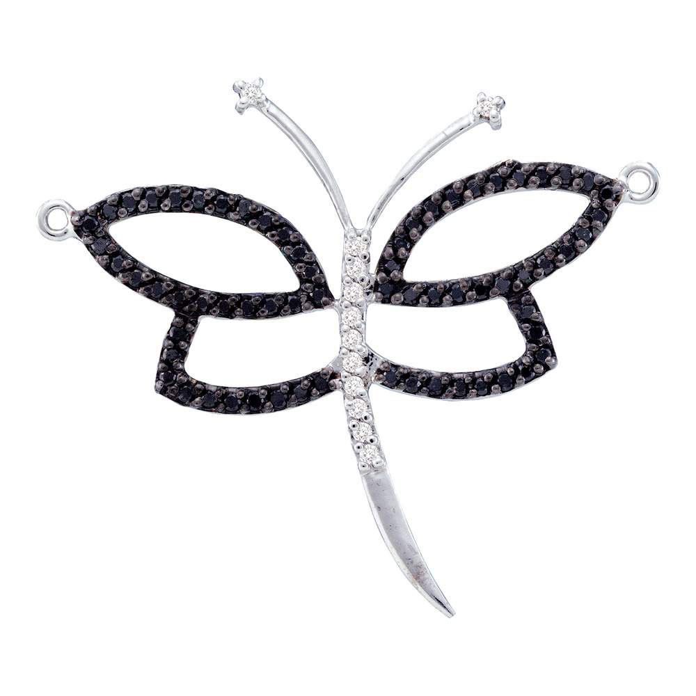 REF-22Y7X - SKU: GD54195 ---- Round Black Color Enhanced Diamond Dragonfly Bug Pendant 3/8 Cttw 14kt White Gold