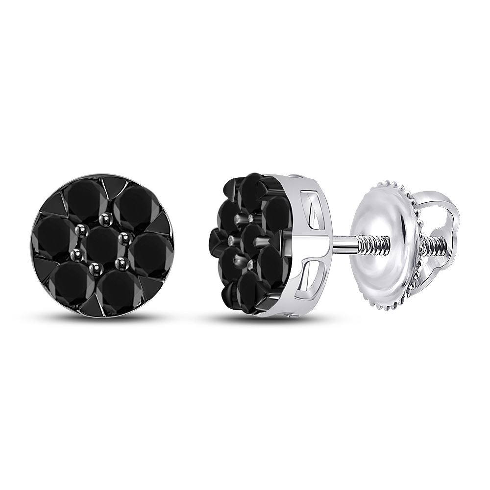 REF-14V5A - SKU: GD66750 ---- Round Black Color Enhanced Diamond Flower Cluster Earrings 3/8 Cttw 14kt White Gold