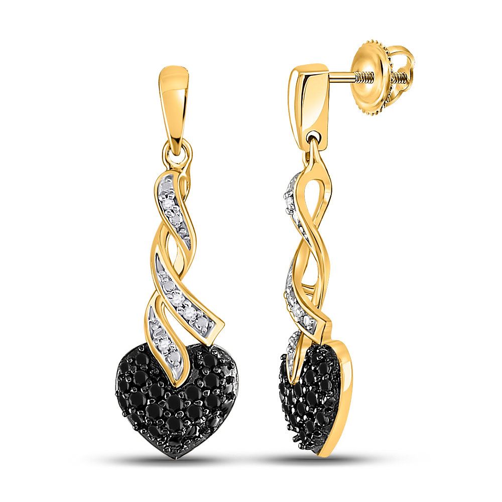 REF-20X0Y - SKU: GD97346 ---- Round Black Color Enhanced Diamond Heart Earrings 1/5 Cttw 10kt Yellow Gold