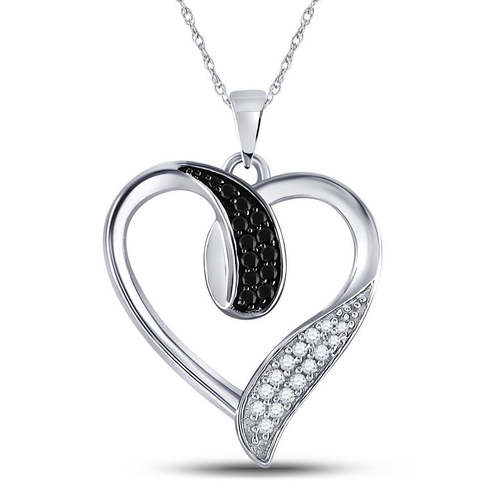 REF-16M4X - SKU: GD87399 ---- Round Black Color Enhanced Diamond Heart Pendant 1/5 Cttw 10kt White Gold