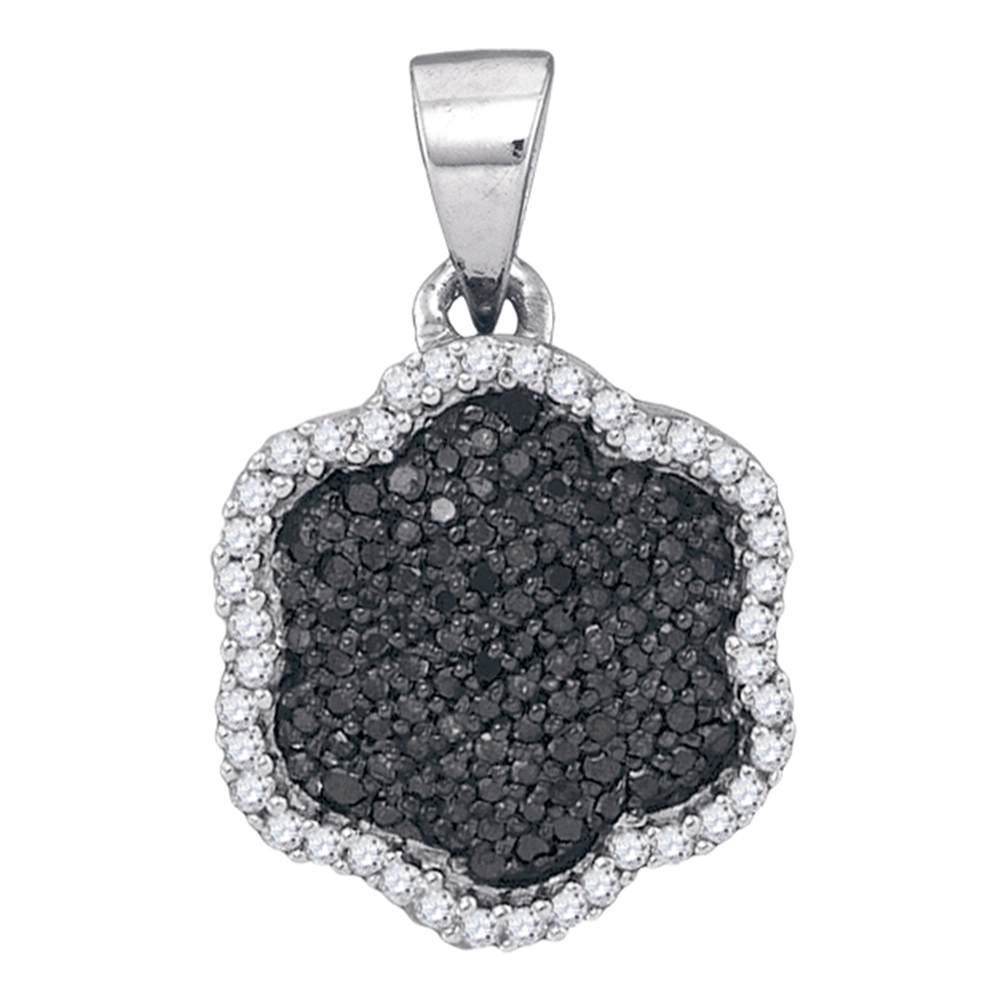 REF-14R5K - SKU: GD89680 ---- Round Black Color Enhanced Diamond Hexagon Cluster Pendant 1/4 Cttw 10kt White Gold