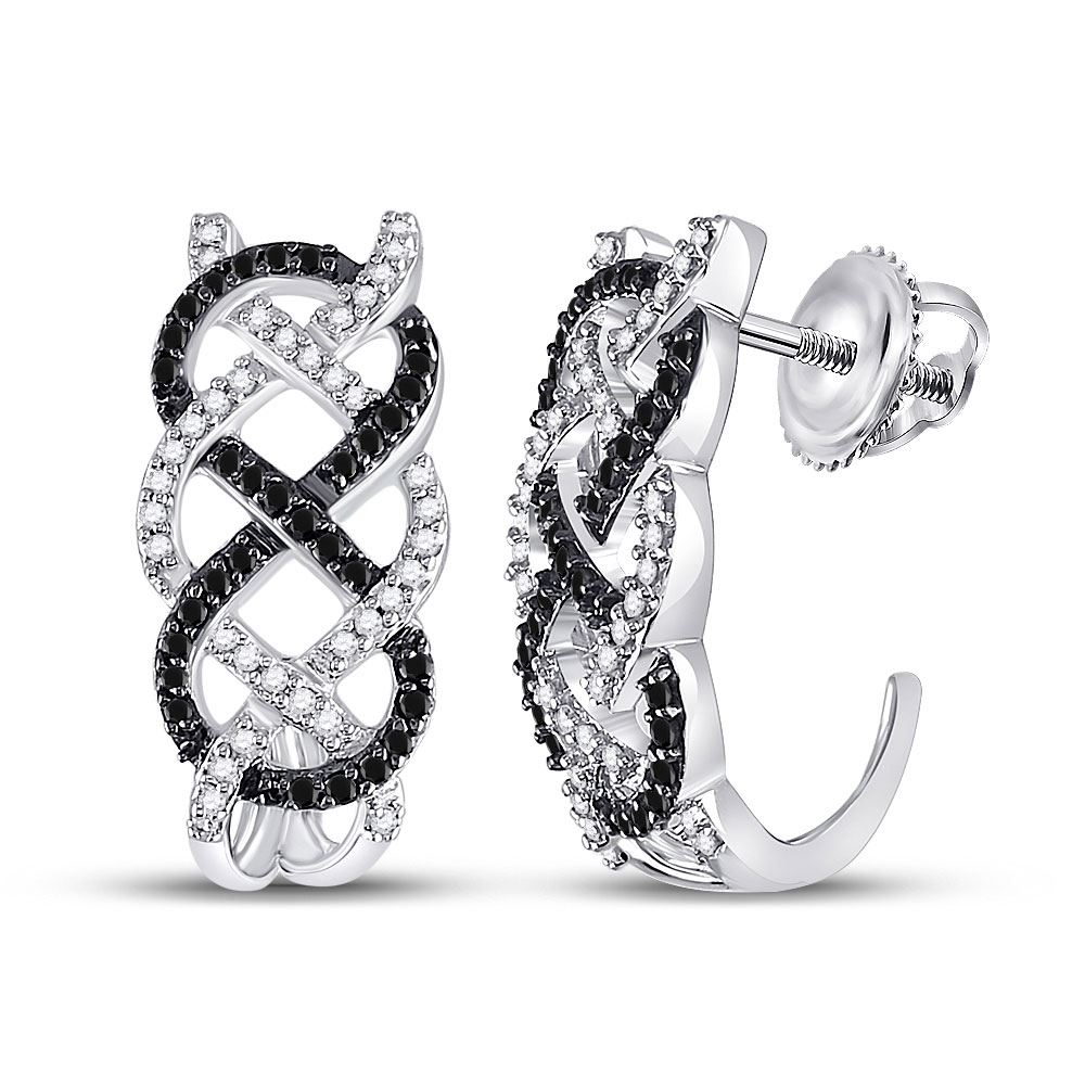REF-33Y6X - SKU: GD92542 ---- Round Black Color Enhanced Diamond Hoop Earrings 1/2 Cttw 10kt White Gold