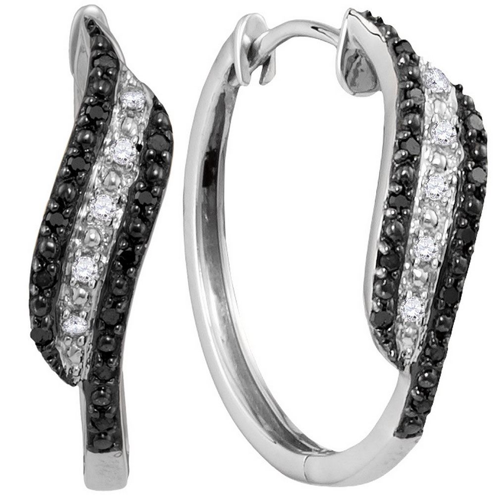 10kt White Gold Womens Round Black Color Enhanced Diamond Hoop Earrings 1/5 Cttw.