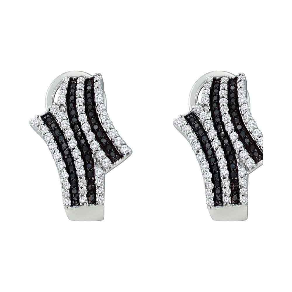 REF-60M9X - SKU: GD54666 ---- Round Black Color Enhanced Diamond Hoop Earrings 7/8 Cttw 10kt White Gold