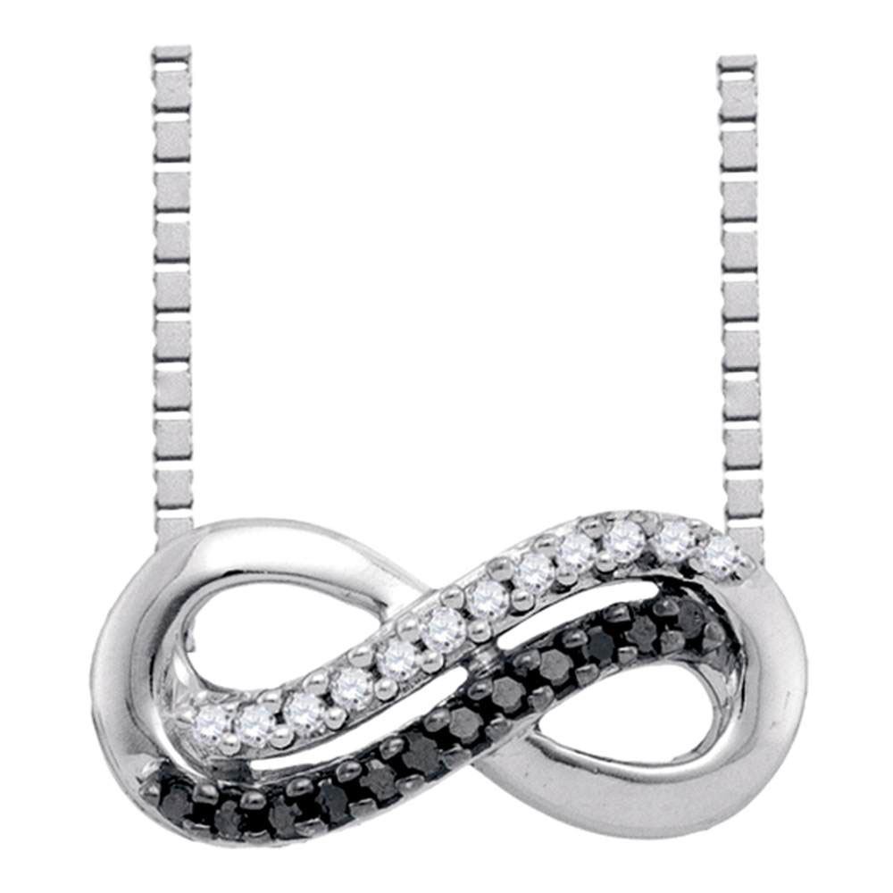 REF-17A3V - SKU: GD91061 ---- Round Black Color Enhanced Diamond Infinity Pendant 1/10 Cttw 10kt White Gold