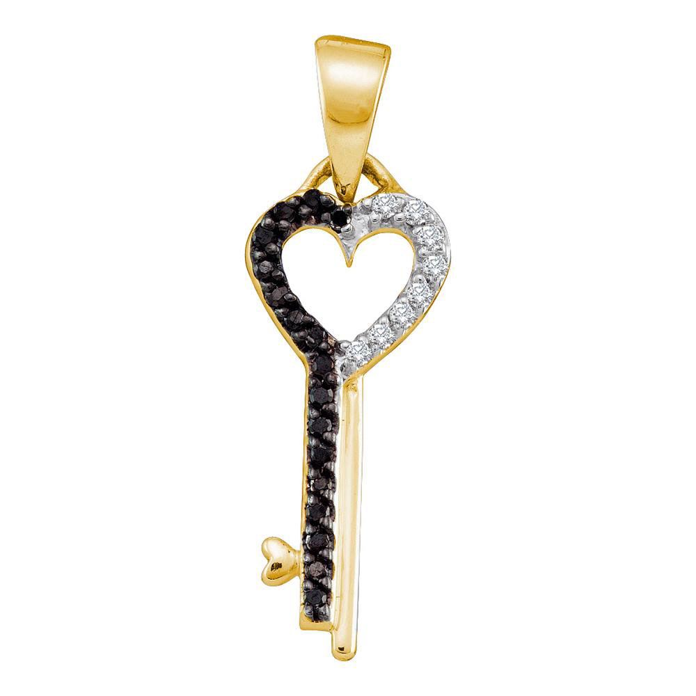 10kt Yellow Gold Womens Round Black Color Enhanced Diamond Key Pendant 1/8 Cttw.