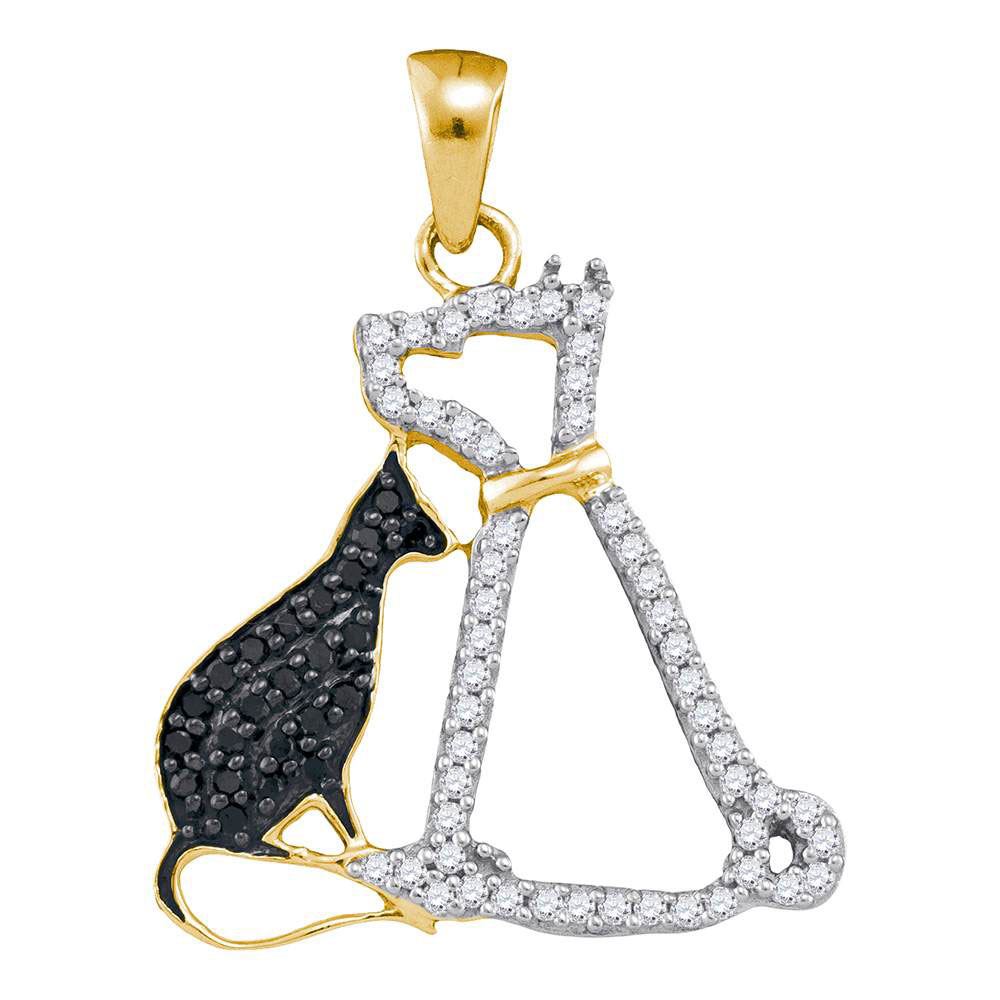 REF-17G3M - SKU: GD92526 ---- Round Black Color Enhanced Diamond Kitty Cat Feline Animal Pendant 1/4 Cttw 10kt Yellow Gold