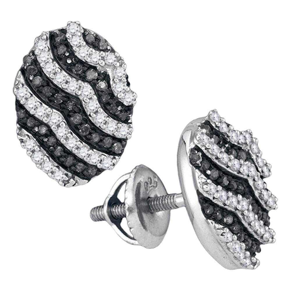 REF-24R5K - SKU: GD88997 ---- Round Black Color Enhanced Diamond Oval Stripe Cluster Earrings 1/2 Cttw 10kt White Gold