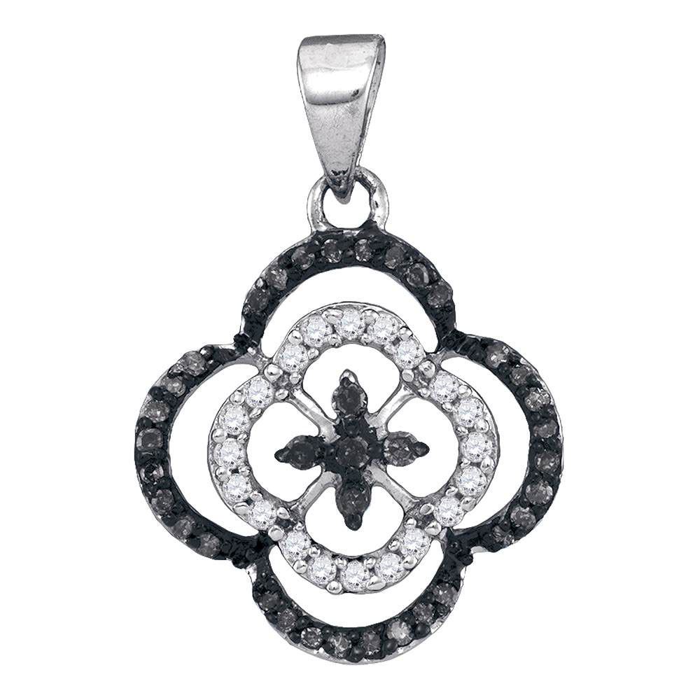 Round Black Color Enhanced Diamond Quatrefoil Cluster Pendant 1/4 Cttw 10KT White Gold