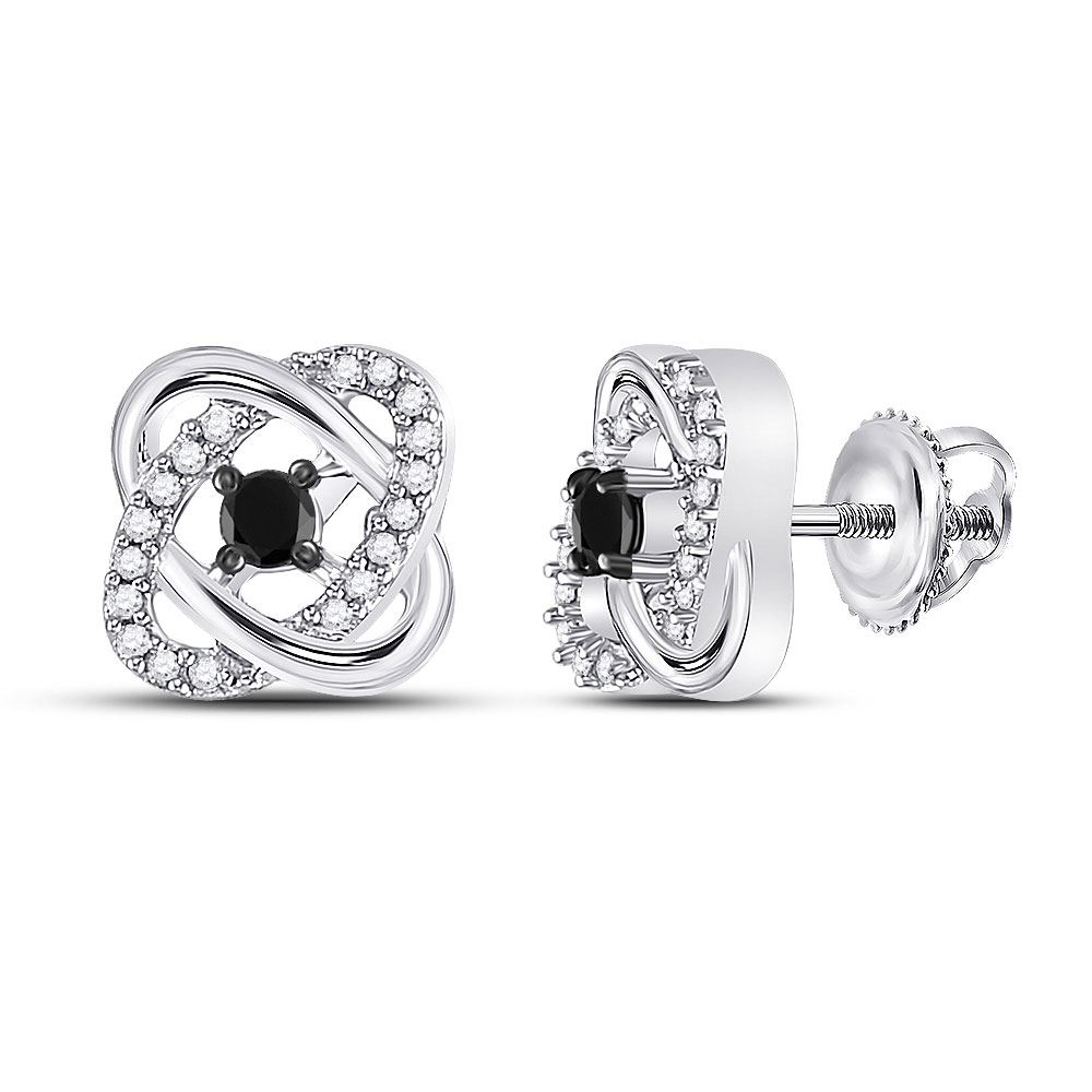 REF-16H4W - SKU: GD90242 ---- Round Black Color Enhanced Diamond Solitaire Oval Frame Earrings 1/4 Cttw 10kt White Gold