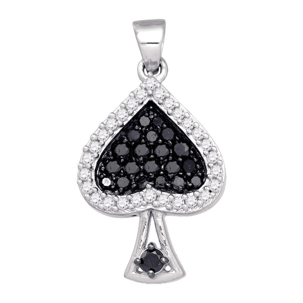 REF-20Y0X - SKU: GD71602 ---- Round Black Color Enhanced Diamond Spade Cluster Pendant 1/2 Cttw 10kt White Gold