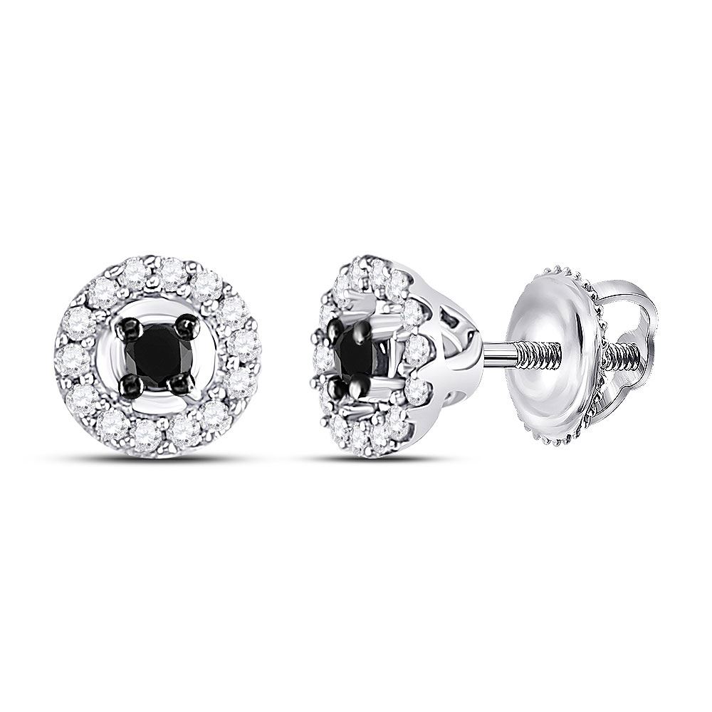 REF-13A6V - SKU: GD83404 ---- Round Black Color Enhanced Diamond Stud Screwback Earrings 1/5 Cttw 10kt White Gold