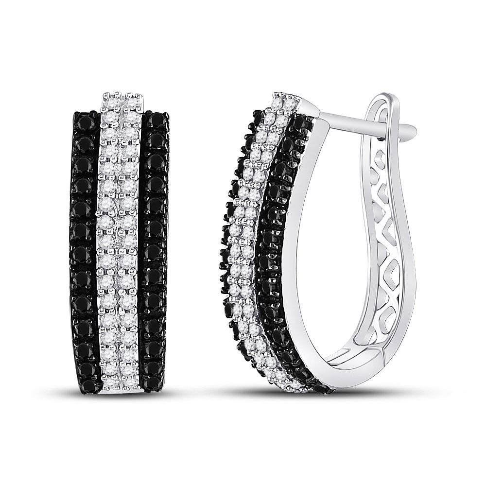 REF-81M8X - SKU: GD51612 ---- Round Black Color Enhanced Diamond Triple Row Vertical Stripe Hoop Earrings 1.00 Cttw 14kt White Gold