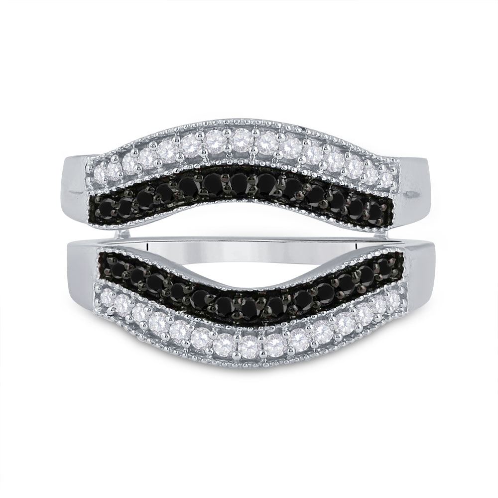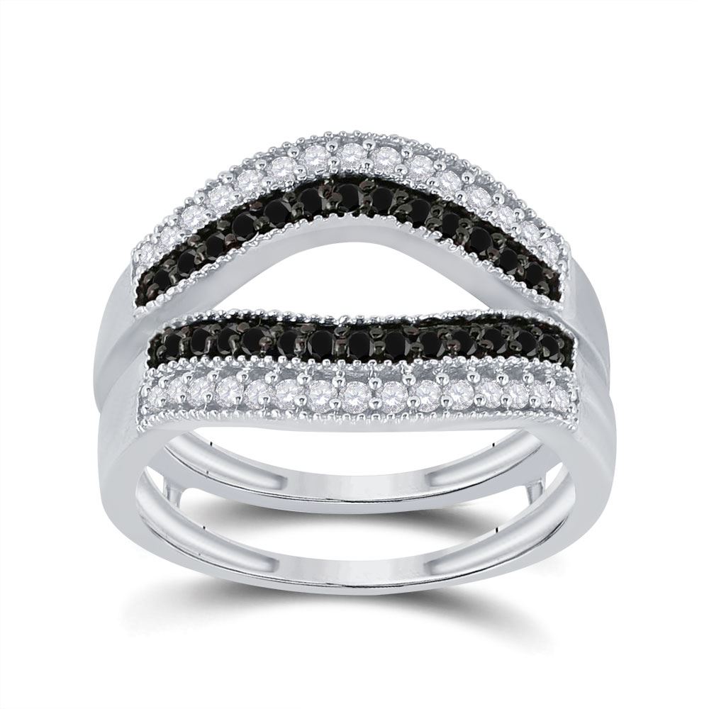 Round Black Color Enhanced Diamond Wrap Ring Guard Enhancer 1/2 Cttw 10KT White Gold