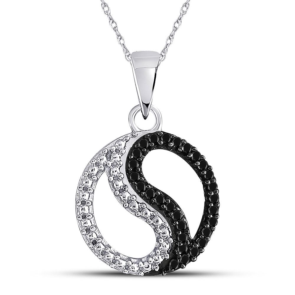 REF-9Y1X - SKU: GD94950 ---- Round Black Color Enhanced Diamond Ying Yang Circle Pendant 1/10 Cttw 10kt White Gold