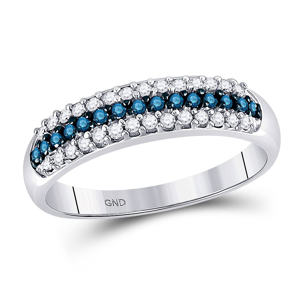 REF-26A4V - SKU: GD83408 ---- Round Blue Color Enhanced Diamond Band Ring 3/8 Cttw 10kt White Gold