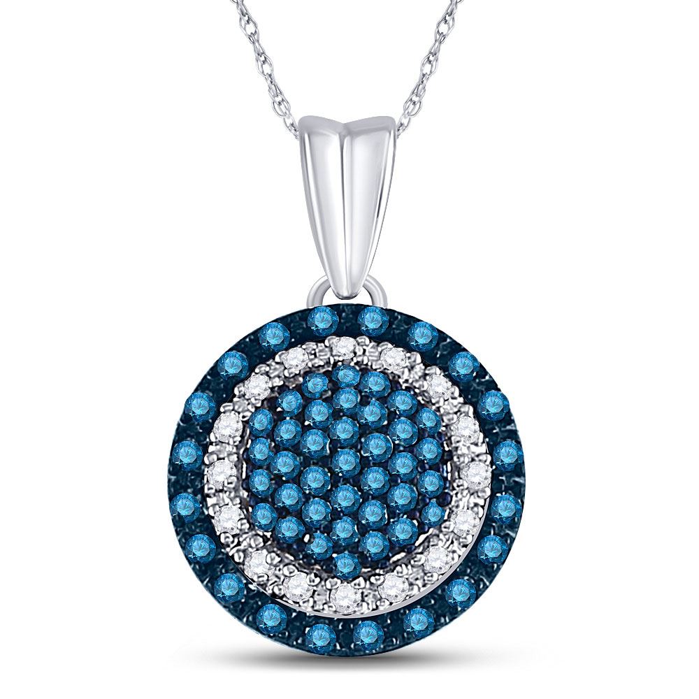REF-17M3X - SKU: GD86465 ---- Round Blue Color Enhanced Diamond Circle Frame Cluster Pendant 1/4 Cttw 10kt White Gold