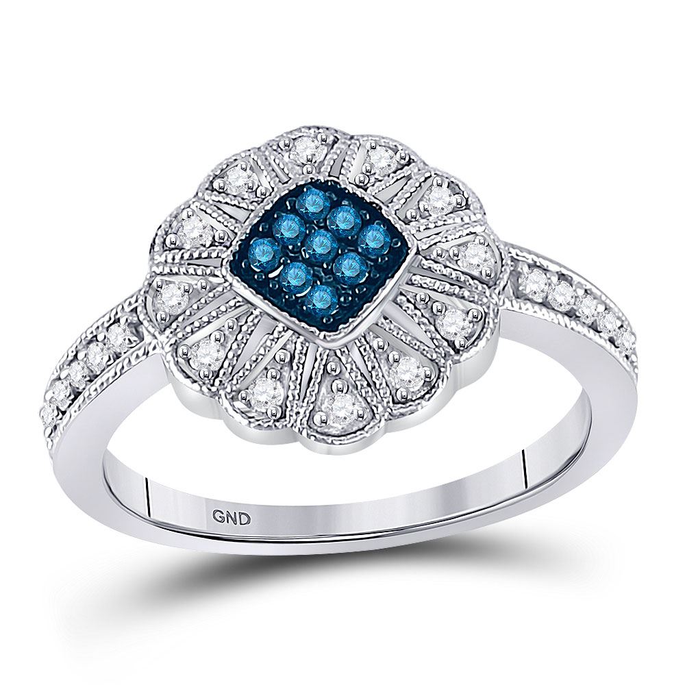 REF-27Y3X - SKU: GD85661 ---- Round Blue Color Enhanced Diamond Cluster Ring 1/4 Cttw 10kt White Gold