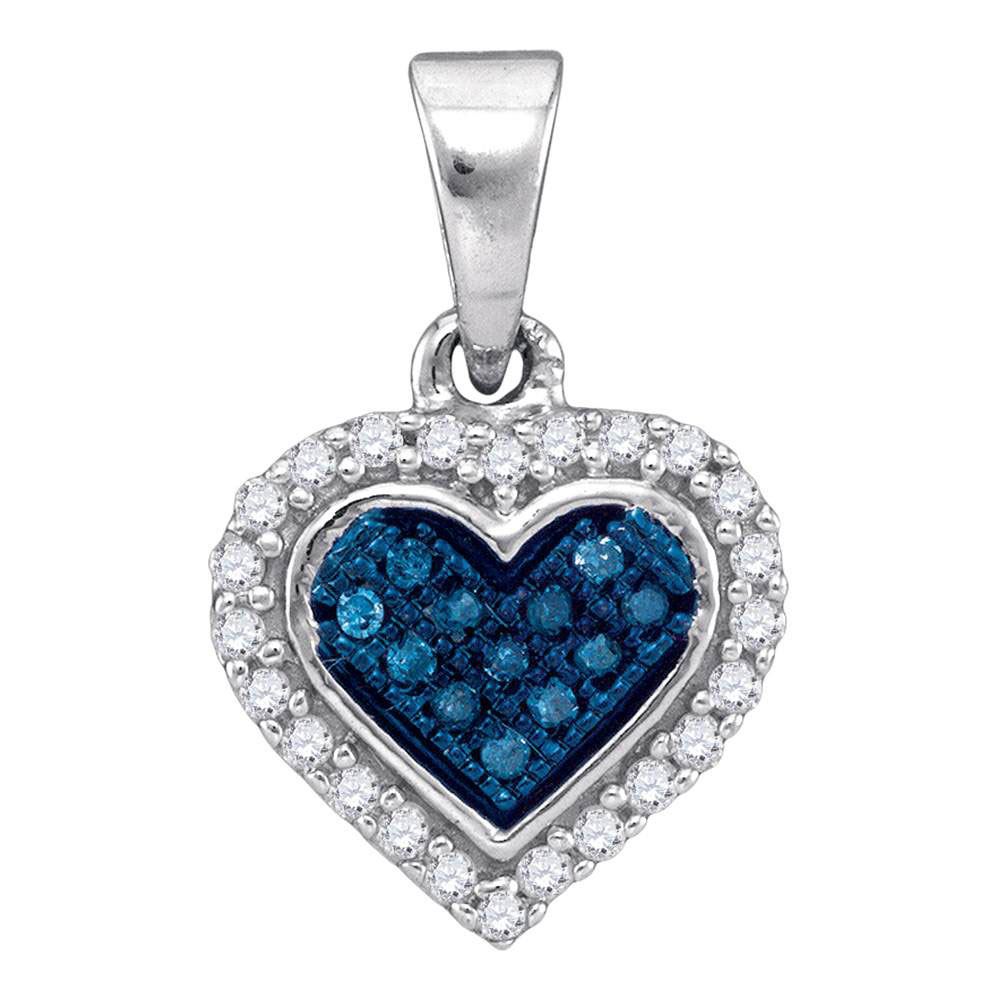 REF-9Y1X - SKU: GD89065 ---- Round Blue Color Enhanced Diamond Cluster Small Heart Pendant 1/8 Cttw 10kt White Gold