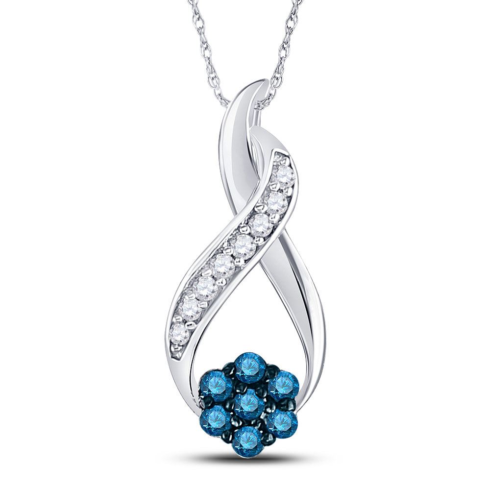 REF-8M2X - SKU: GD110691 ---- Round Blue Color Enhanced Diamond Cluster Twist Pendant 1/6 Cttw 10kt White Gold