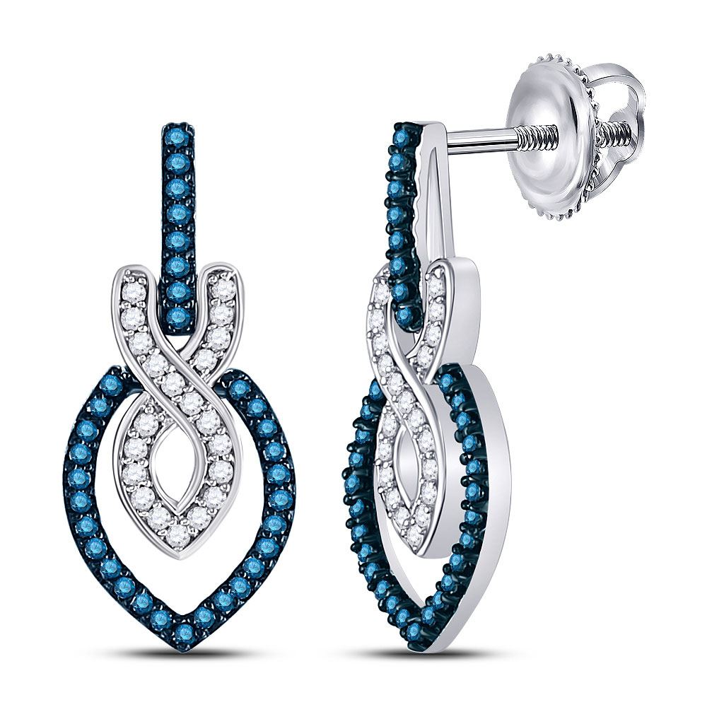 10kt White Gold Womens Round Blue Color Enhanced Diamond Dangle Earrings 1/3 Cttw.