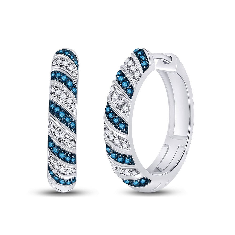 REF-47V3A - SKU: GD65962 ---- Round Blue Color Enhanced Diamond Hoop Earrings 3/8 Cttw 10kt White Gold