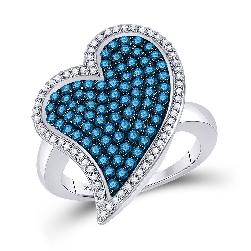 REF-63Y6X - SKU: GD72380 ---- Round Blue Color Enhanced Diamond Large Heart Cluster Ring 1-3/8 Cttw 10kt White Gold