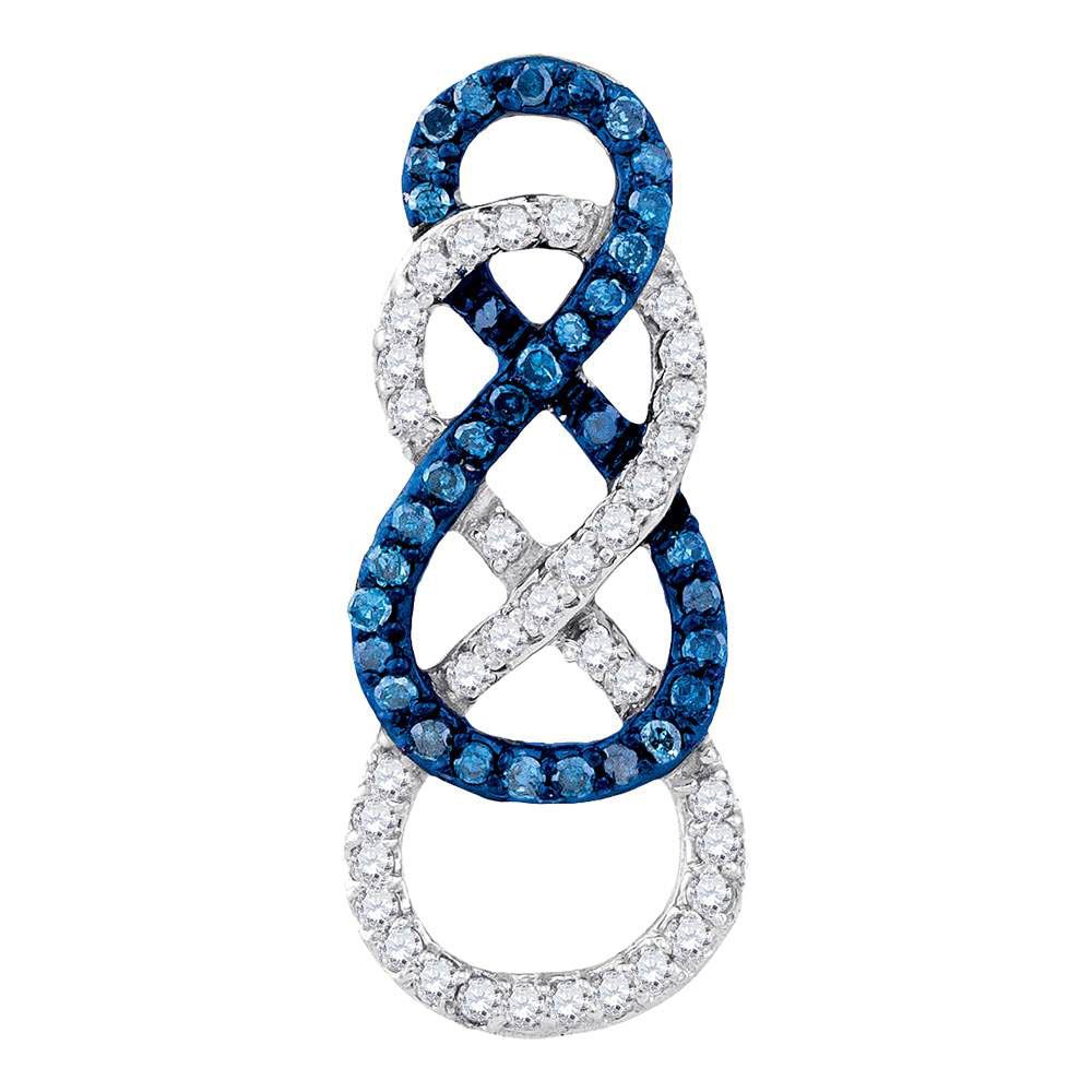 REF-17M3X - SKU: GD89229 ---- Round Blue Color Enhanced Diamond Linked Infinity Pendant 1/4 Cttw 10kt Yellow Gold