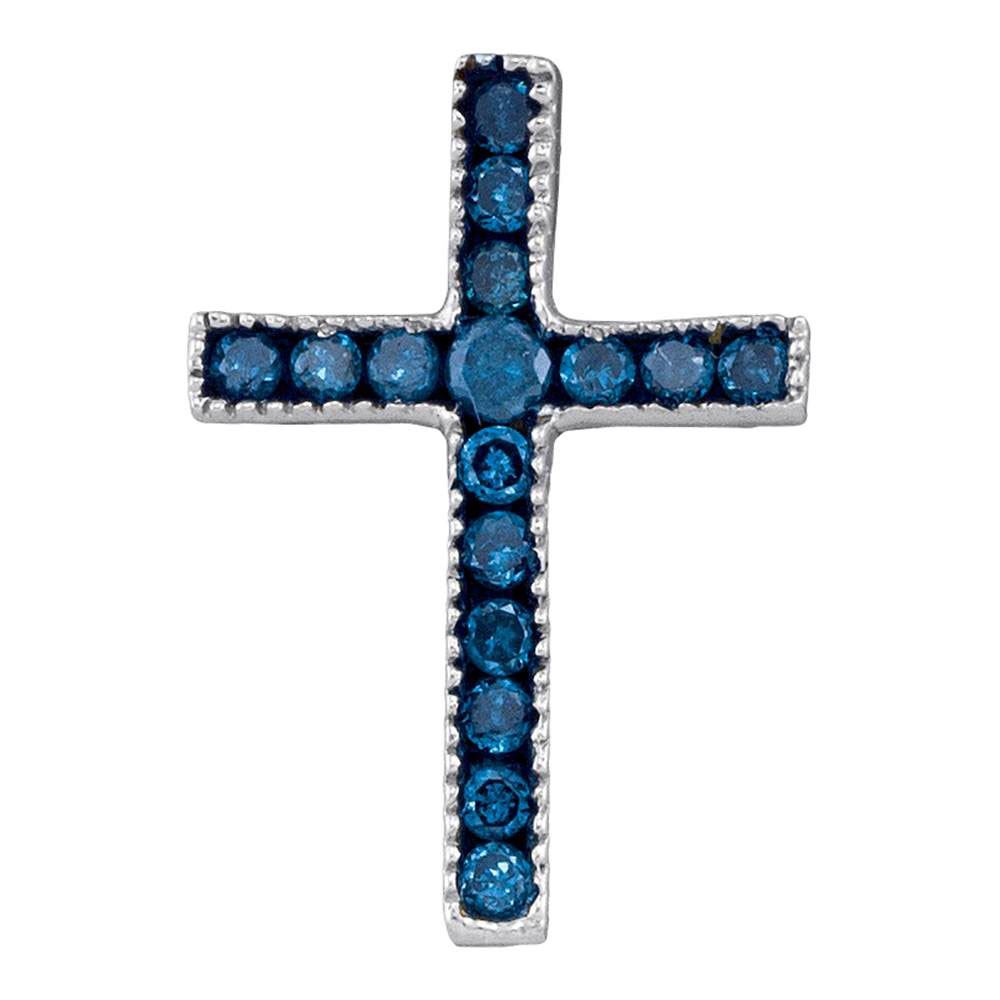 Round Blue Color Enhanced Diamond Small Cross Pendant 1/6 Cttw 10KT White Gold