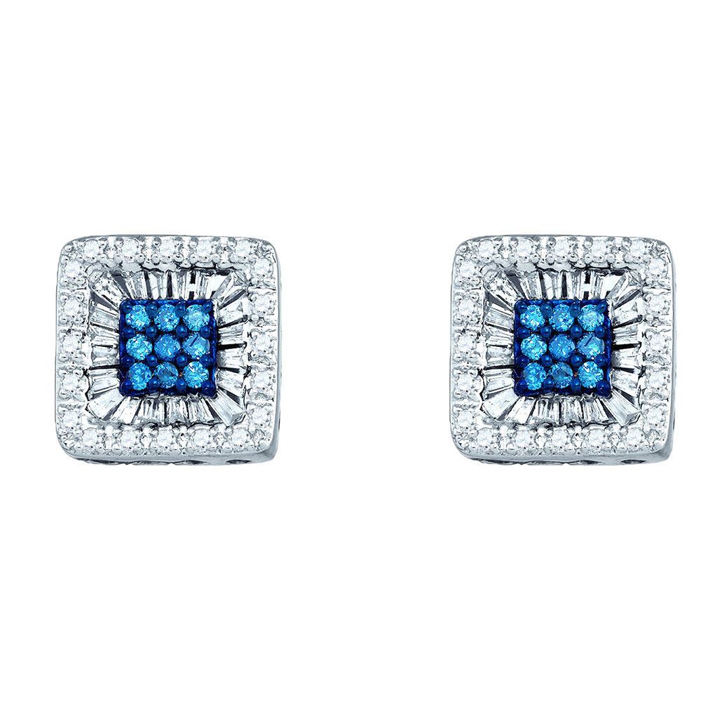 REF-39A1V - SKU: GD75020 ---- Round Blue Color Enhanced Diamond Square Stud Earrings 1/2 Cttw 10kt White Gold