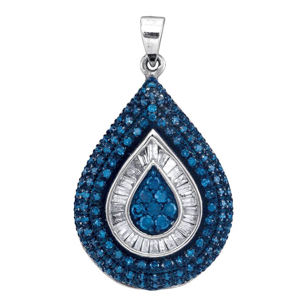 REF-40X9Y - SKU: GD88930 ---- Round Blue Color Enhanced Diamond Teardrop Frame Pendant 1.00 Cttw 10kt White Gold