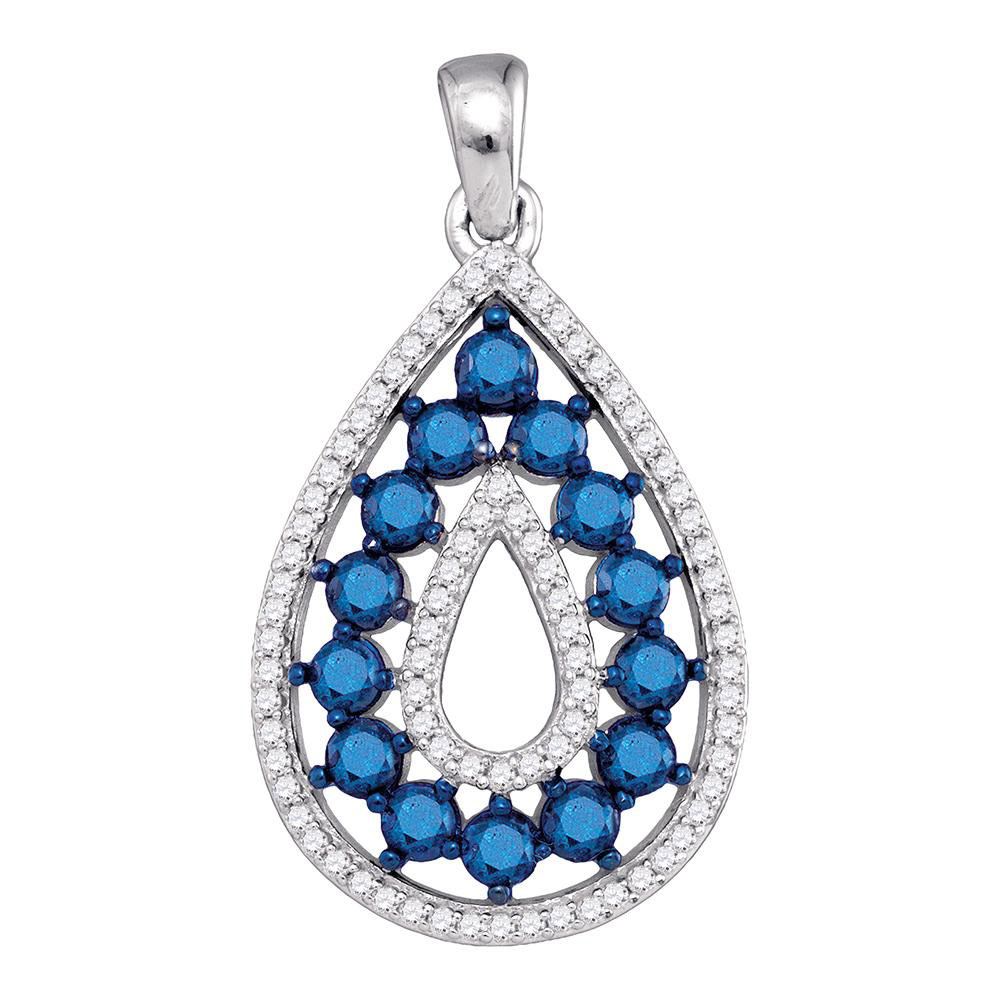 REF-36A4V - SKU: GD81948 ---- Round Blue Color Enhanced Diamond Teardrop Framed Pendant 1.00 Cttw 10kt White Gold
