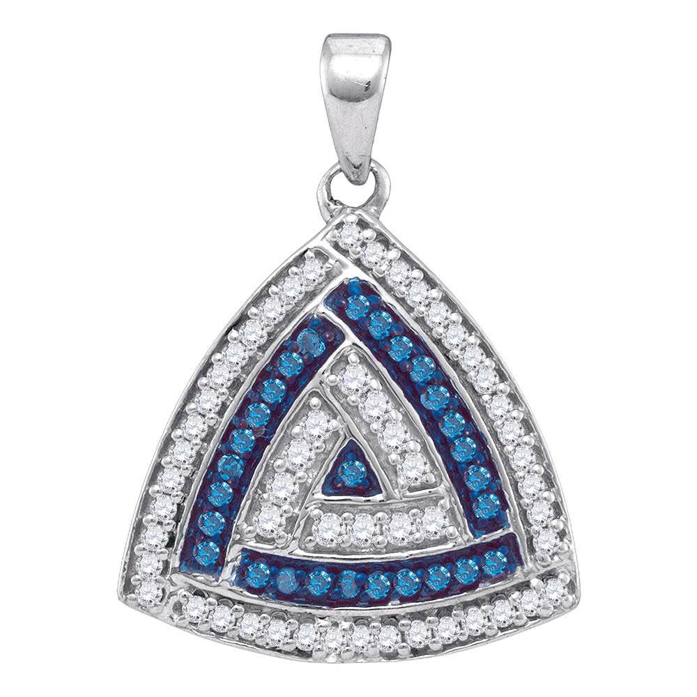 REF-19M1X - SKU: GD87075 ---- Round Blue Color Enhanced Diamond Triangle Pendant 1/3 Cttw 10kt White Gold