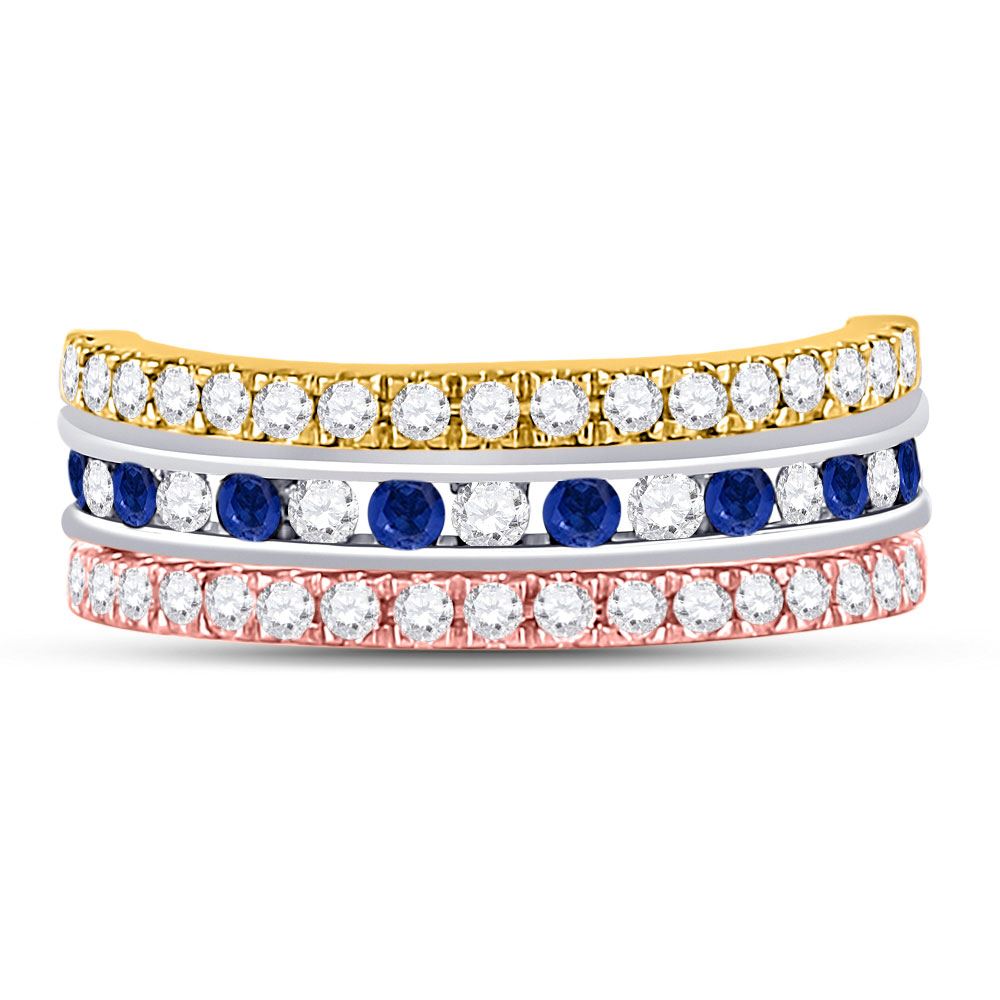 10kt Tri-Tone Gold Womens Round Blue Sapphire Convertible Band Ring 1-1/4 Cttw.
