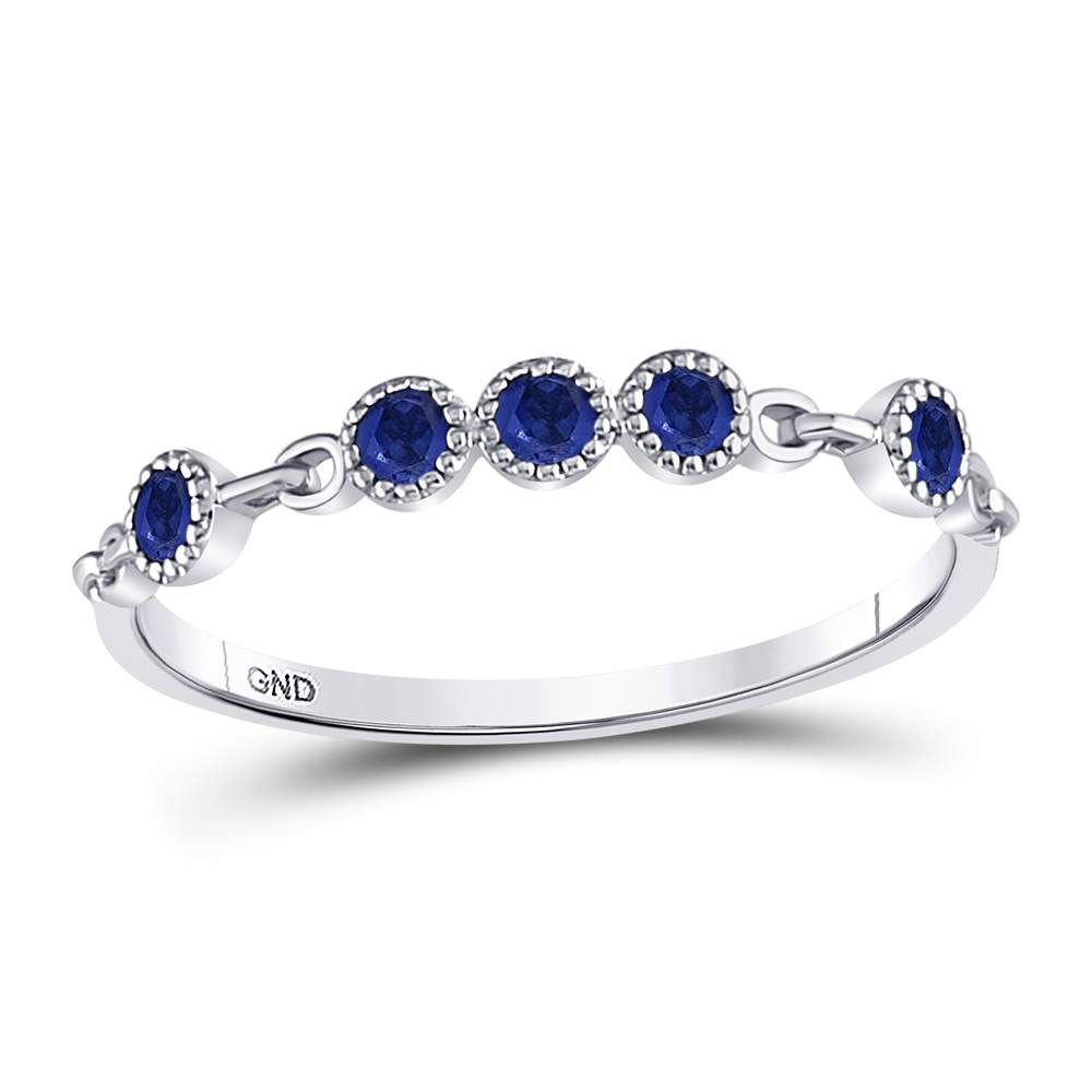 REF-10M9X - SKU: GD127689 ---- Round Blue Sapphire Dot Stackable Band Ring 1/5 Cttw 10kt White Gold