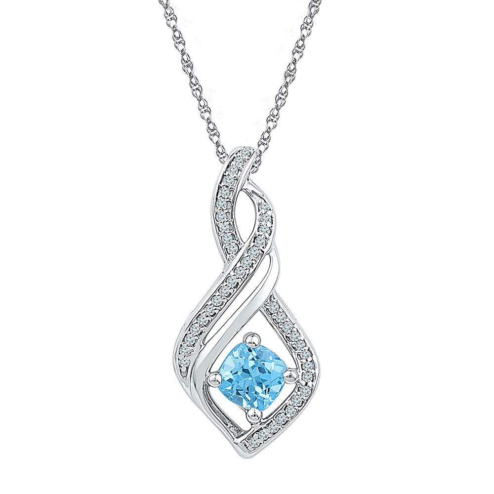 REF-14H5W - SKU: GD100797 ---- Round Blue Topaz Solitaire Diamond Pendant 3/4 Cttw 10kt White Gold
