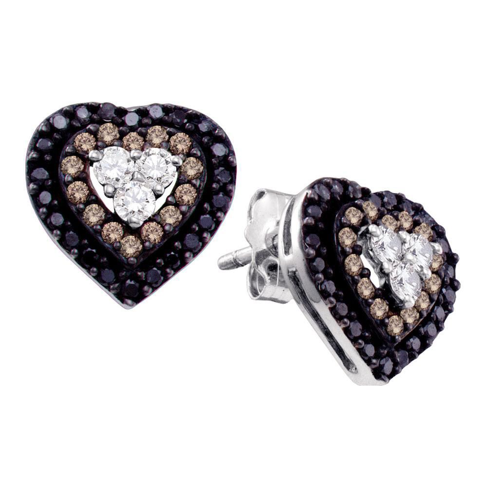 REF-40F9N - SKU: GD59146 ---- Round Brown Black Color Enhanced Diamond Heart Cluster Earrings 1/2 Cttw 14kt White Gold