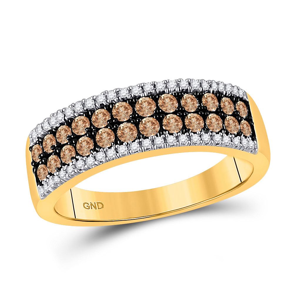 REF-50X0Y - SKU: GD81634 ---- Round Brown Diamond 2-row Band Ring 3/4 Cttw 14kt Yellow Gold
