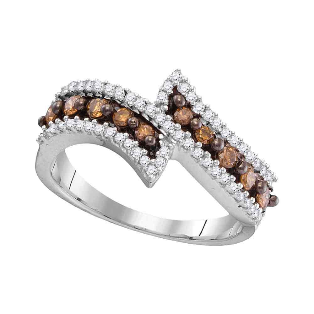 REF-36K4R - SKU: GD104434 ---- Round Brown Diamond Bypass Band Ring 1/2 Cttw 10kt White Gold