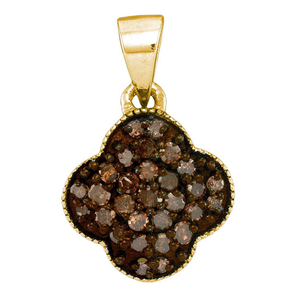 REF-9H1W - SKU: GD88627 ---- Round Brown Diamond Cluster Pendant 1/4 Cttw 10kt Yellow Gold