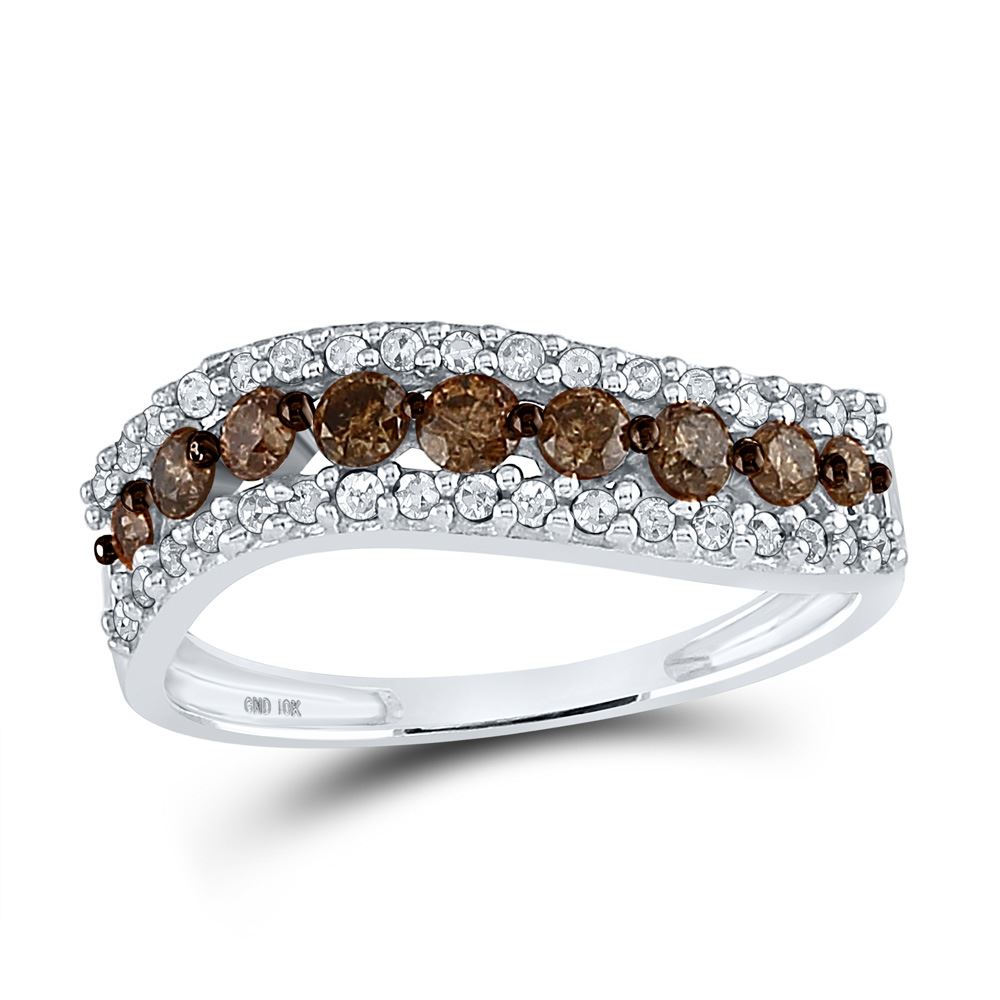 10kt White Gold Womens Round Brown Diamond Contoured Band 3/4 Cttw.