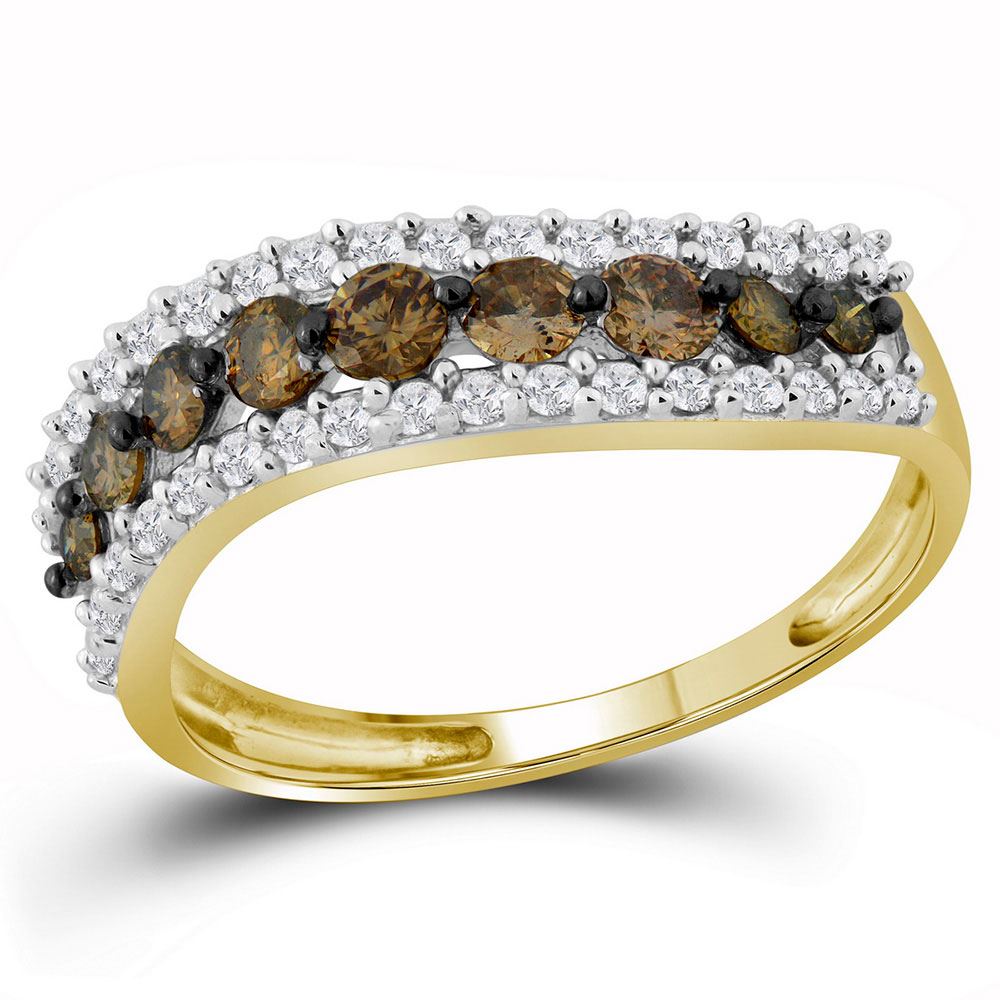 Round Brown Diamond Contoured Band 3/4 Cttw 10KT Yellow Gold