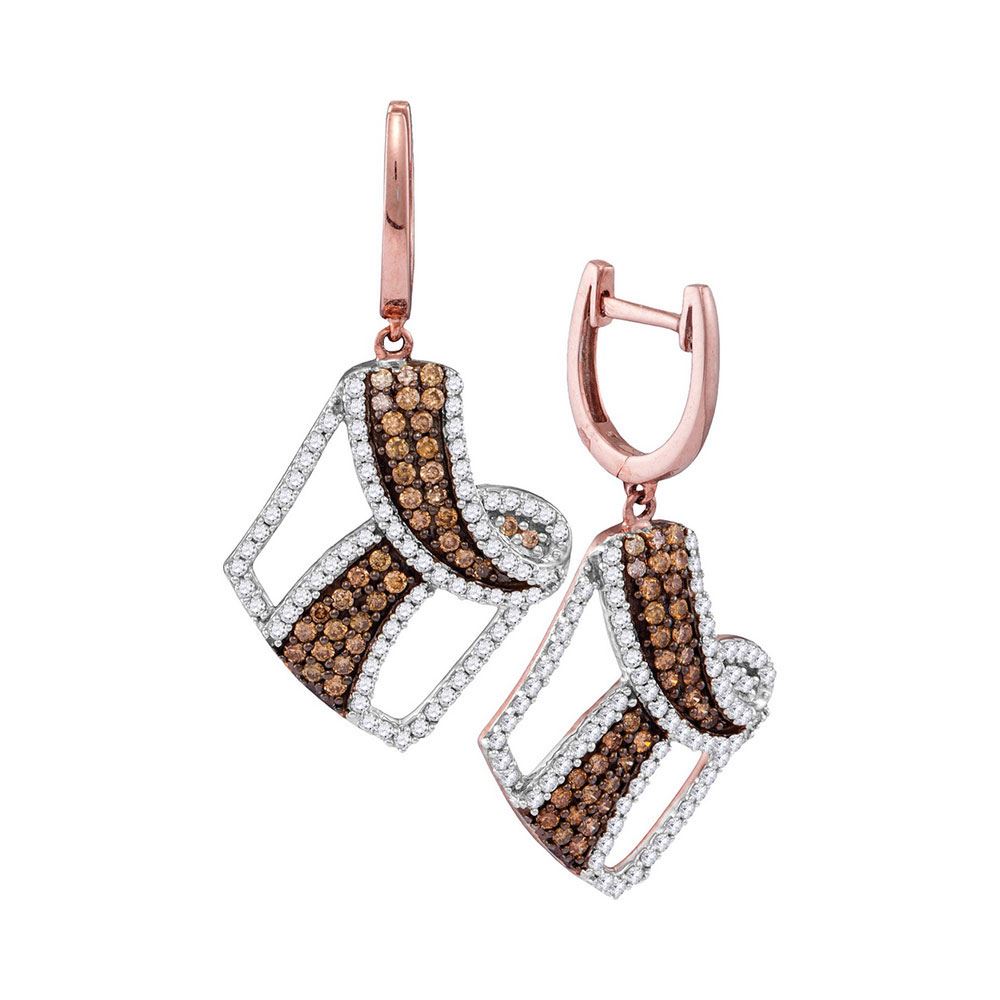 REF-79A1V - SKU: GD110134 ---- Round Brown Diamond Dangle Earrings 1-3/4 Cttw 10kt Rose Gold