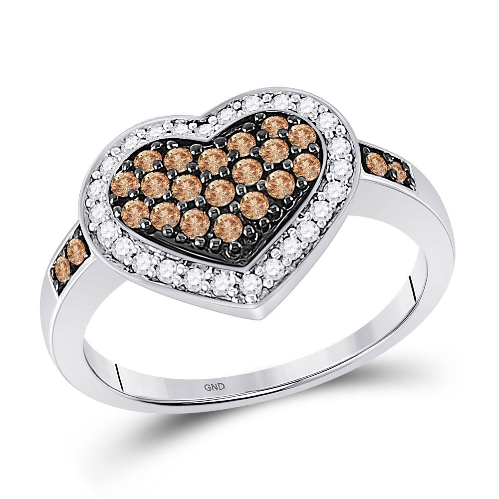 REF-36N4F - SKU: GD68308 ---- Round Brown Diamond Framed Heart Cluster Ring 1/2 Cttw 10kt White Gold