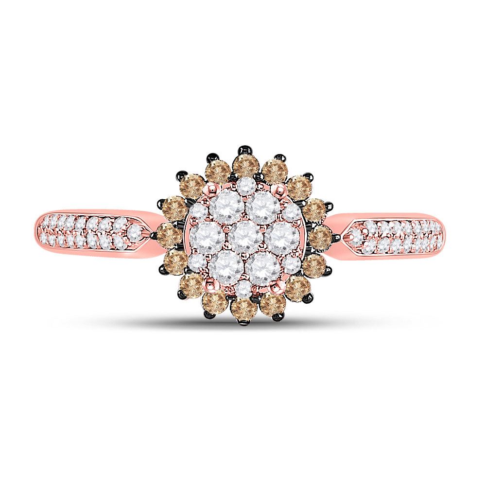 10kt Rose Gold Womens Round Brown Diamond Halo Cluster Ring 1/2 Cttw.