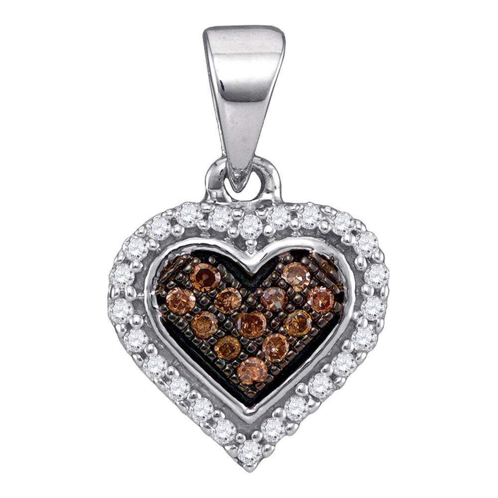 Round Brown Diamond Heart Cluster Pendant 1/8 Cttw 10KT White Gold